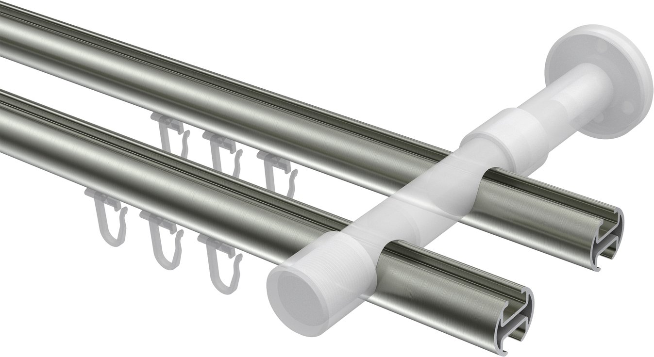 Informationen zu Innenlauf Gardinenstange Edelstahl-Optik 20 mm Ø 2-läufig PRESTIGE - Verano: