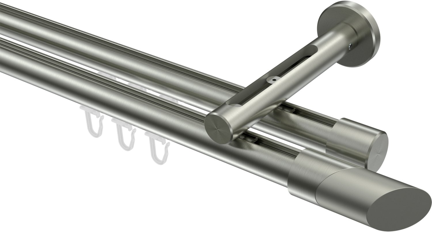 Gardinenstangen mit Innenlauf aus Edelstahl-Optik in 20 mm Ø, 2-läufig, Modell SITENO - Verano