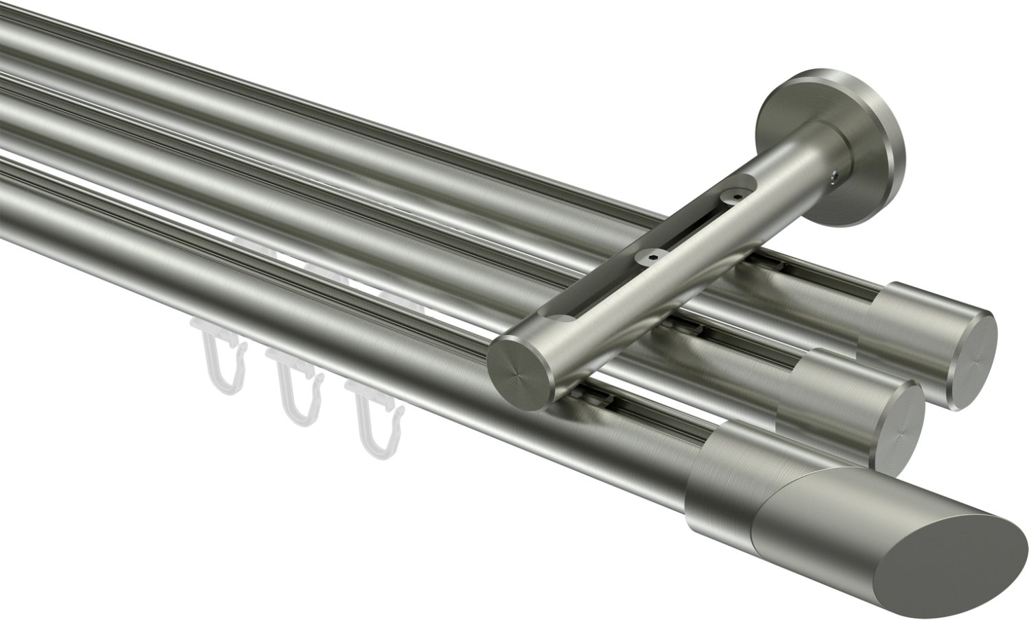 Gardinenstangen mit Innenlauf aus Edelstahl-Optik in 20 mm Ø, 3-läufig, Modell SITENO - Verano