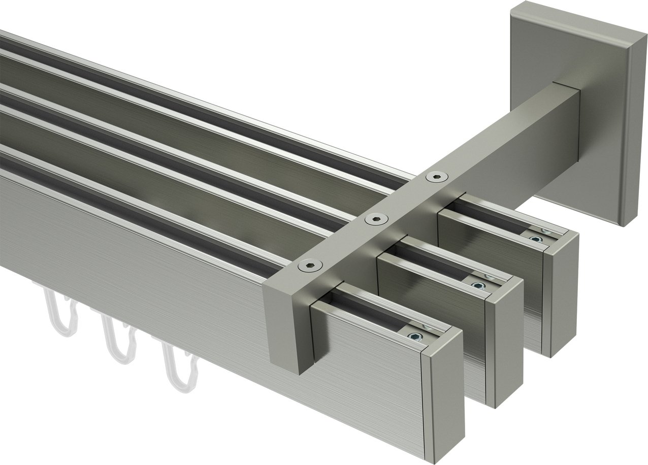 Gardinenstangen mit eckigem Innenlauf aus Edelstahl-Optik in 14x35 mm, 3-läufig, Modell SMARTLINE - Paxo (Wandabstand lang)