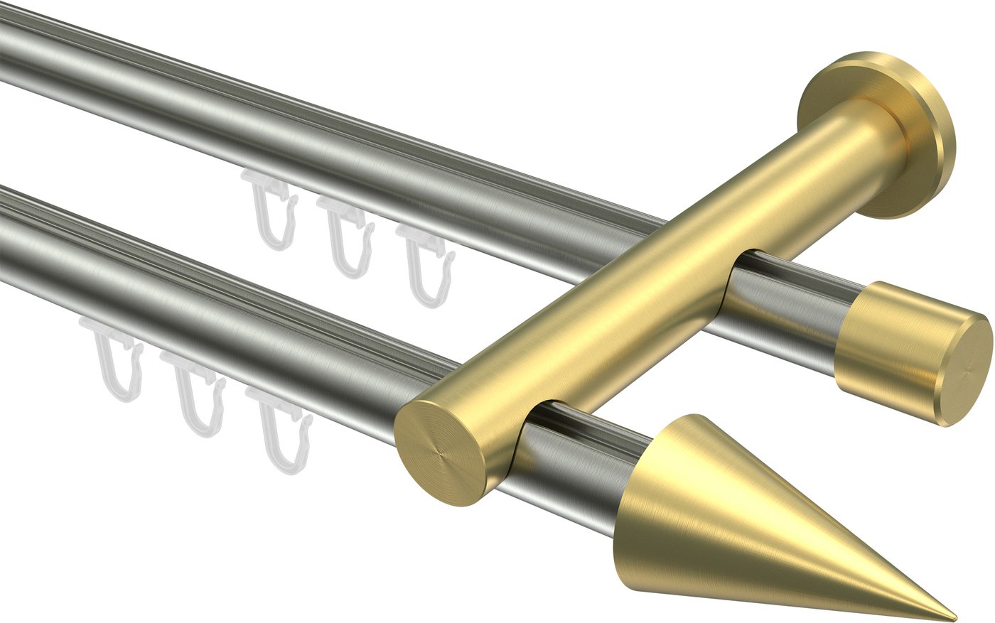 Gardinenstangen mit Innenlauf aus Edelstahl-Optik / Messing-Optik in 20 mm Ø, 2-läufig, Modell PLATON - Savio