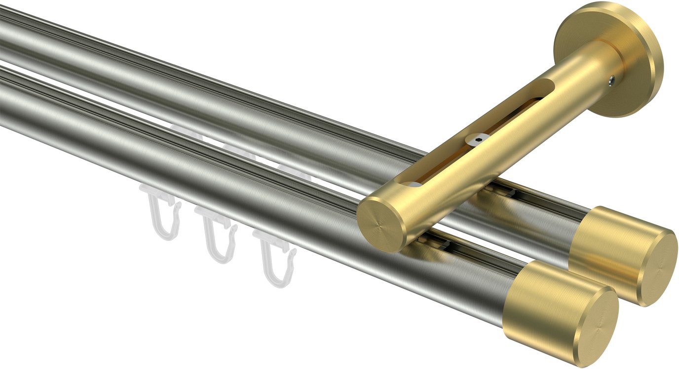 Gardinenstangen mit Innenlauf aus Edelstahl-Optik / Messing-Optik in 20 mm Ø, 2-läufig, Modell SITENO - Santo