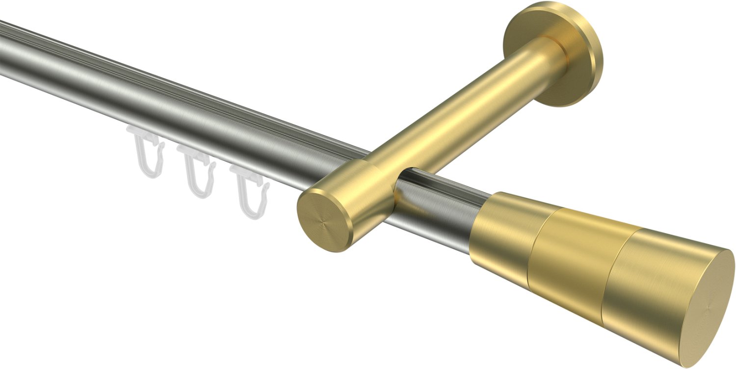 Gardinenstangen mit Innenlauf aus Edelstahl-Optik / Messing-Optik in 20 mm Ø, 1-läufig, Modell PRESTIGE - Tanara