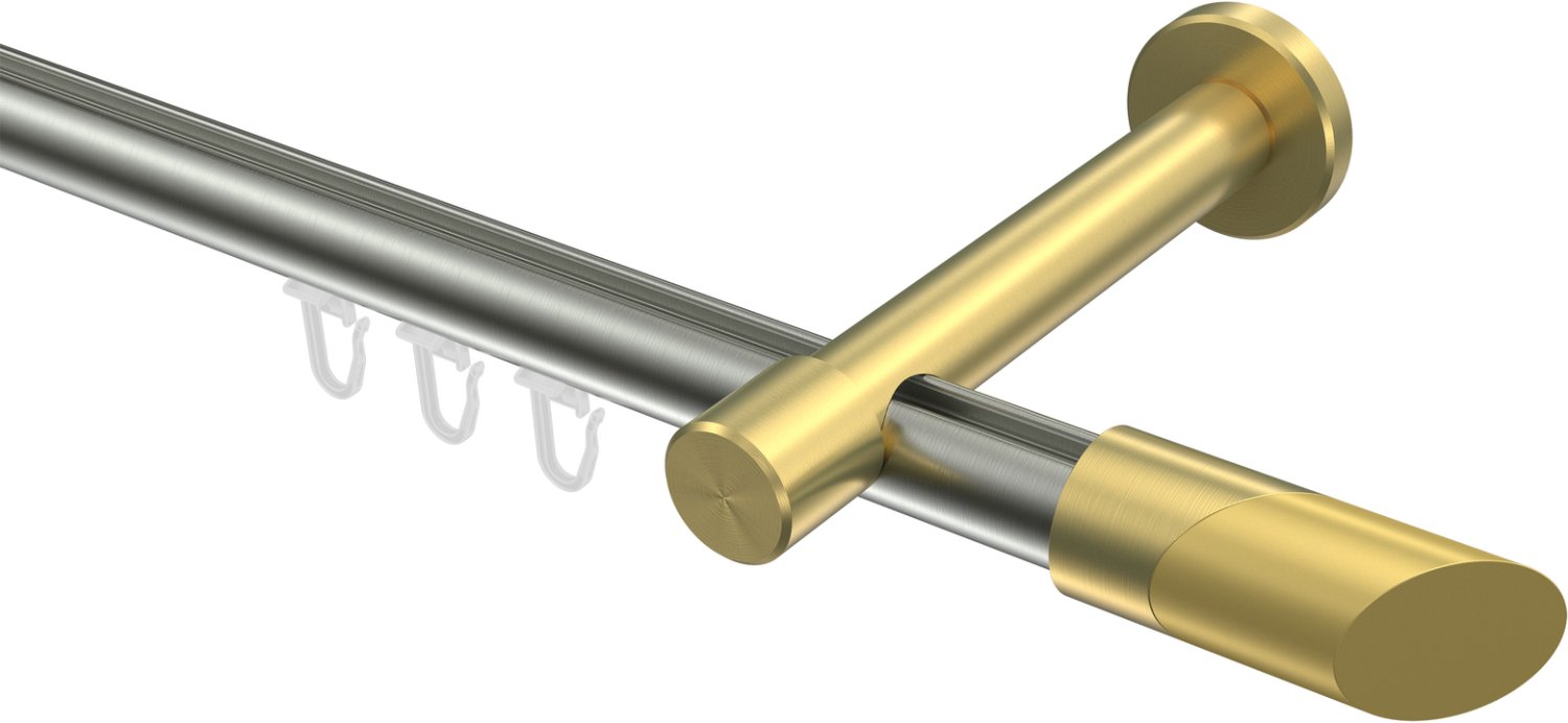 Informationen zu Innenlauf Gardinenstange Edelstahl-Optik / Messing-Optik 20 mm Ø PRESTIGE - Verano: