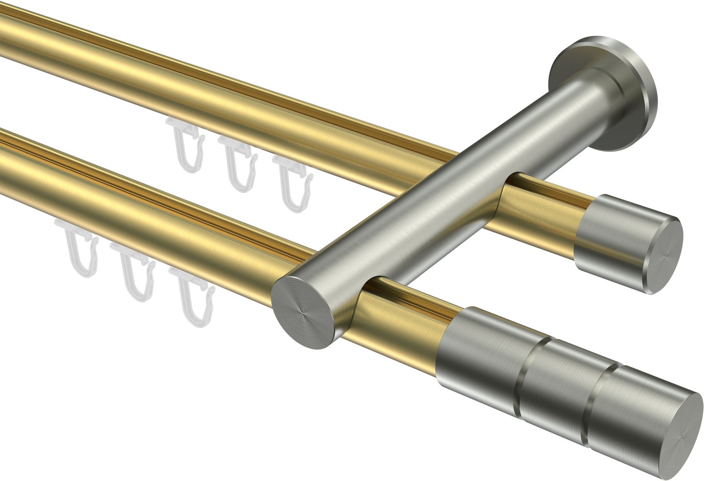 Gardinenstangen mit Innenlauf aus Messing-Optik / Edelstahl-Optik in 20 mm Ø, 2-läufig, Modell PLATON - Elanto