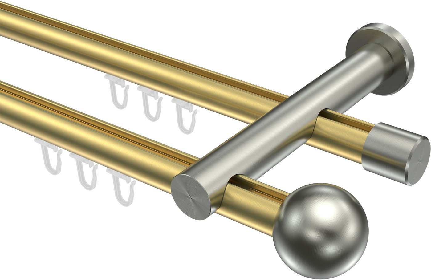 Gardinenstangen mit Innenlauf aus Messing-Optik / Edelstahl-Optik in 20 mm Ø, 2-läufig, Modell PLATON - Luino