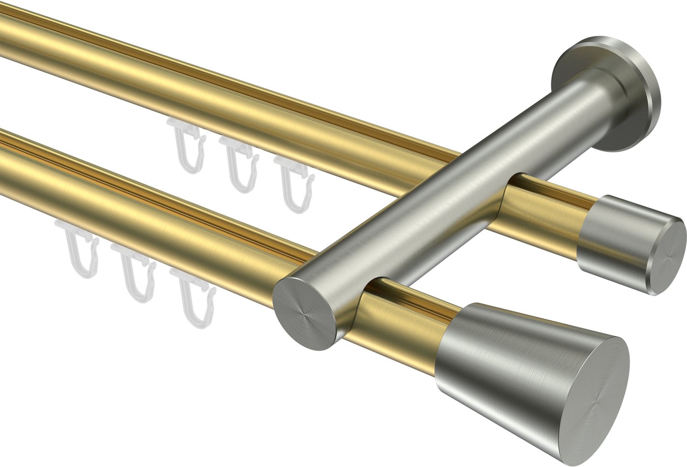 Gardinenstangen mit Innenlauf aus Messing-Optik / Edelstahl-Optik in 20 mm Ø, 2-läufig, Modell PLATON - Sitra