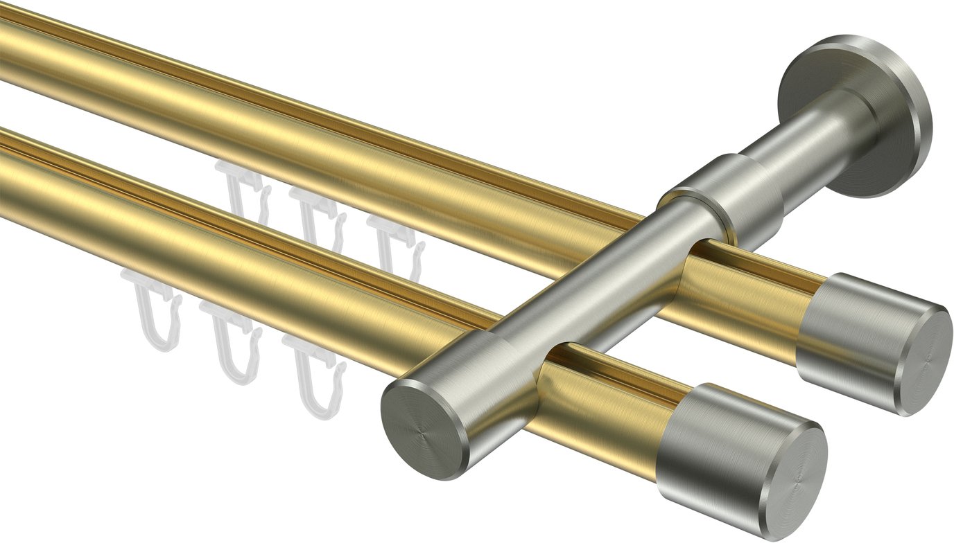 Informationen zu Innenlauf Gardinenstange Messing-Optik / Edelstahl-Optik 20 mm Ø 2-läufig PRESTIGE - Santo: