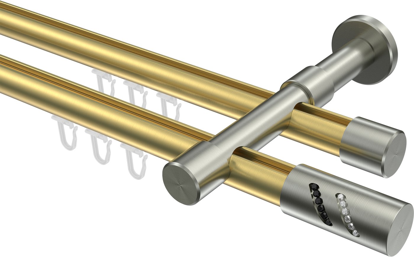 Gardinenstangen mit Innenlauf aus Messing-Optik / Edelstahl-Optik in 20 mm Ø, 2-läufig, Modell PRESTIGE - Zoena