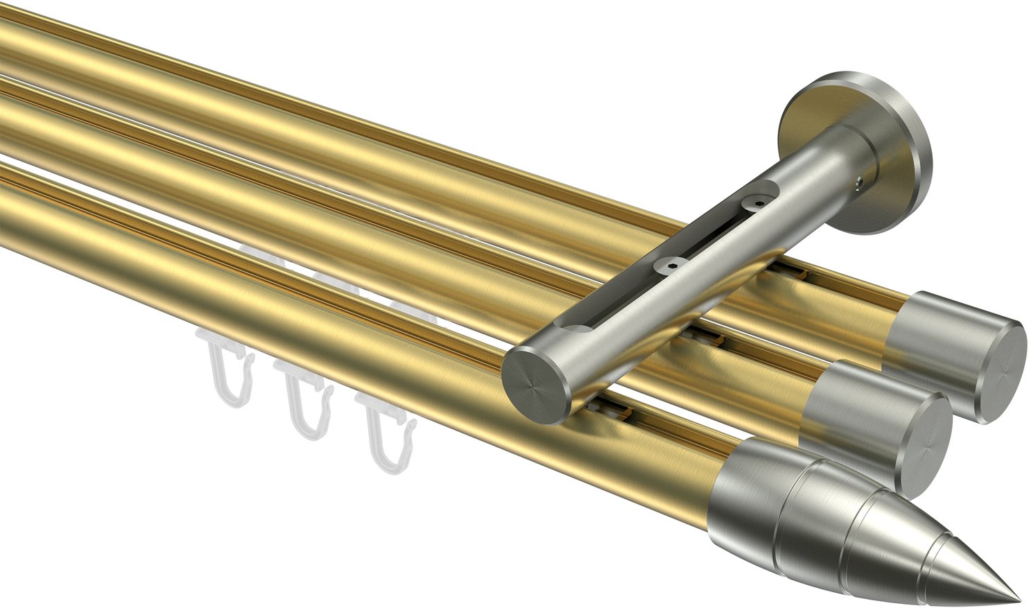 Gardinenstangen mit Innenlauf aus Messing-Optik / Edelstahl-Optik in 20 mm Ø, 3-läufig, Modell SITENO - Samanto