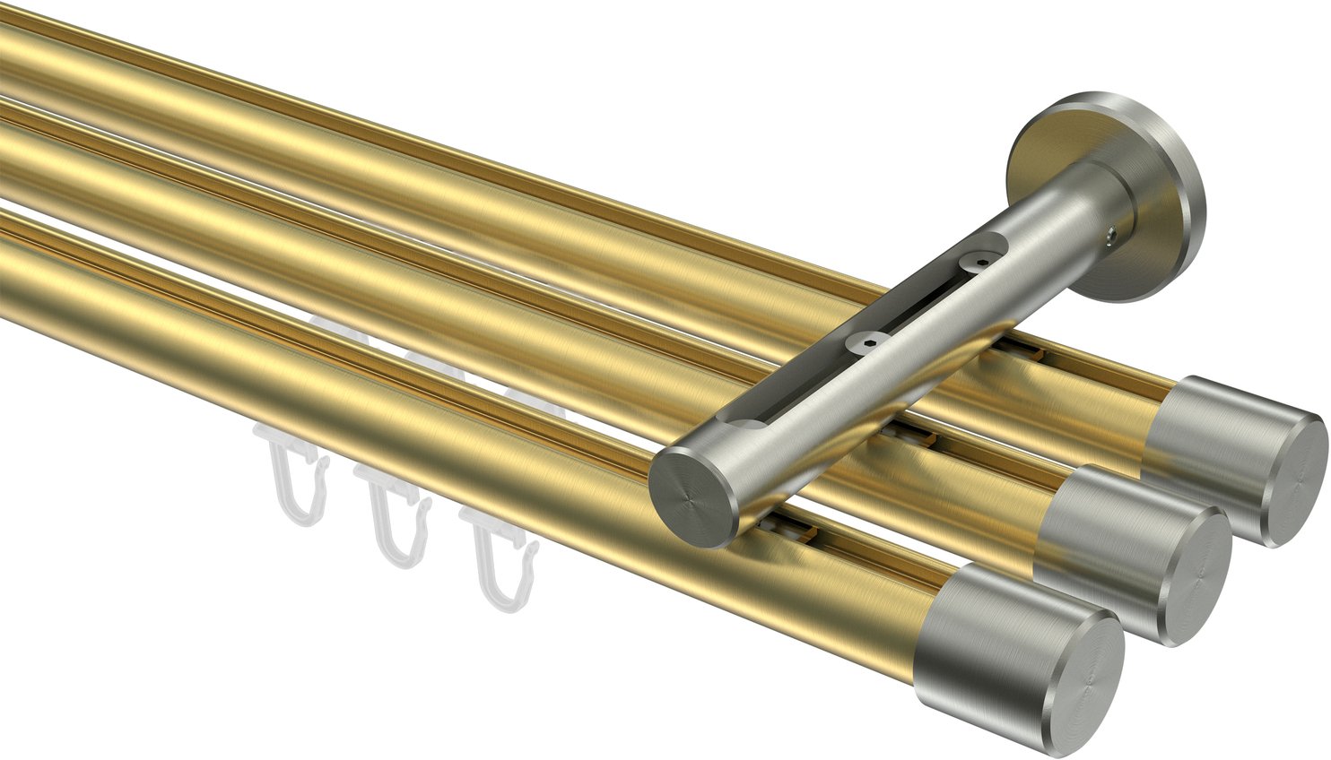 Gardinenstangen mit Innenlauf aus Messing-Optik / Edelstahl-Optik in 20 mm Ø, 3-läufig, Modell SITENO - Santo