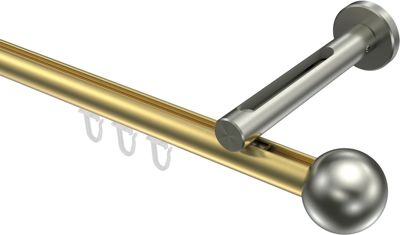 Gardinenstangen mit Innenlauf aus Messing-Optik / Edelstahl-Optik in 20 mm Ø, 1-läufig, Modell SITENO - Luino