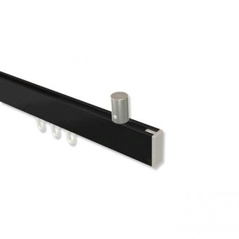 Gardinenstangen mit eckigem Innenlauf Deckenmontage aus Aluminium / Metall in 14x35 mm, 1-läufig, Modell SONIUS - Paxo Schwarz / Edelstahl-Optik