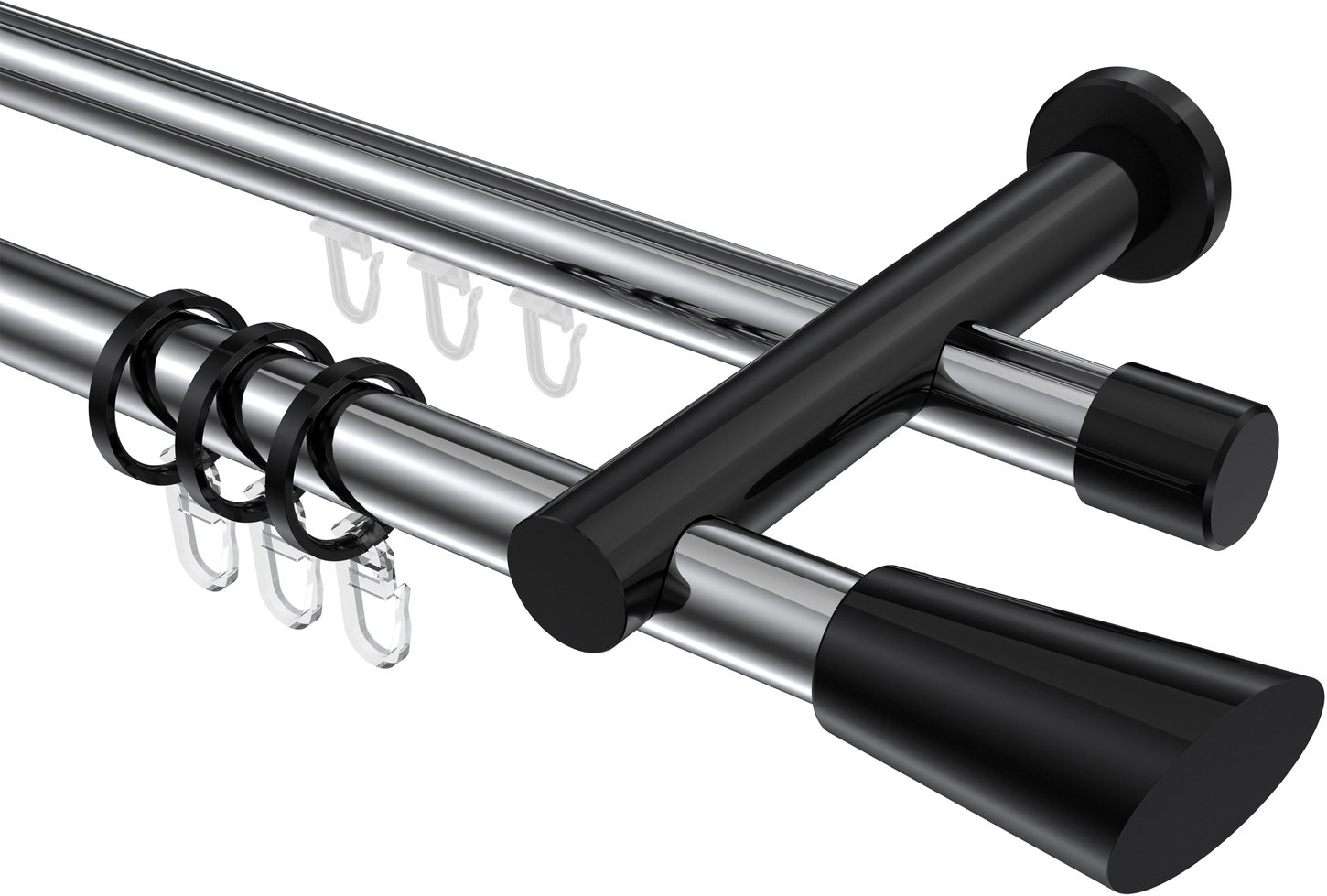 Rundrohr-Innenlauf Gardinenstangen aus Aluminium / Metall in 20 mm Ø, 2-läufig, Modell PLATON - Bento Chrom / Schwarz