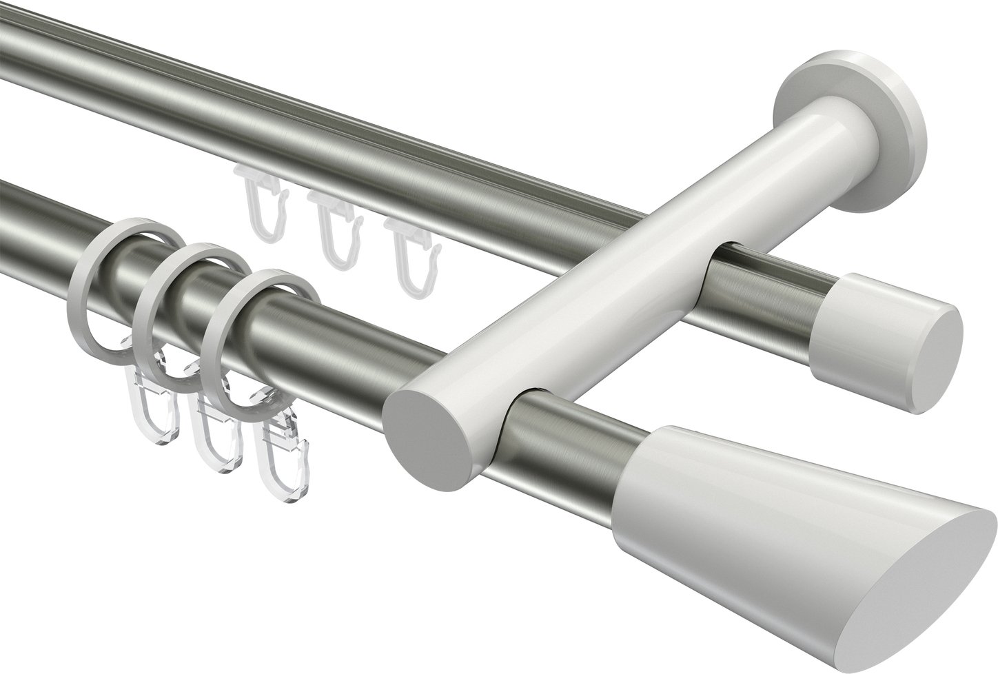 Rundrohr-Innenlauf Gardinenstangen aus Aluminium / Metall in 20 mm Ø, 2-läufig, Modell PLATON - Bento Edelstahl-Optik / Weiß