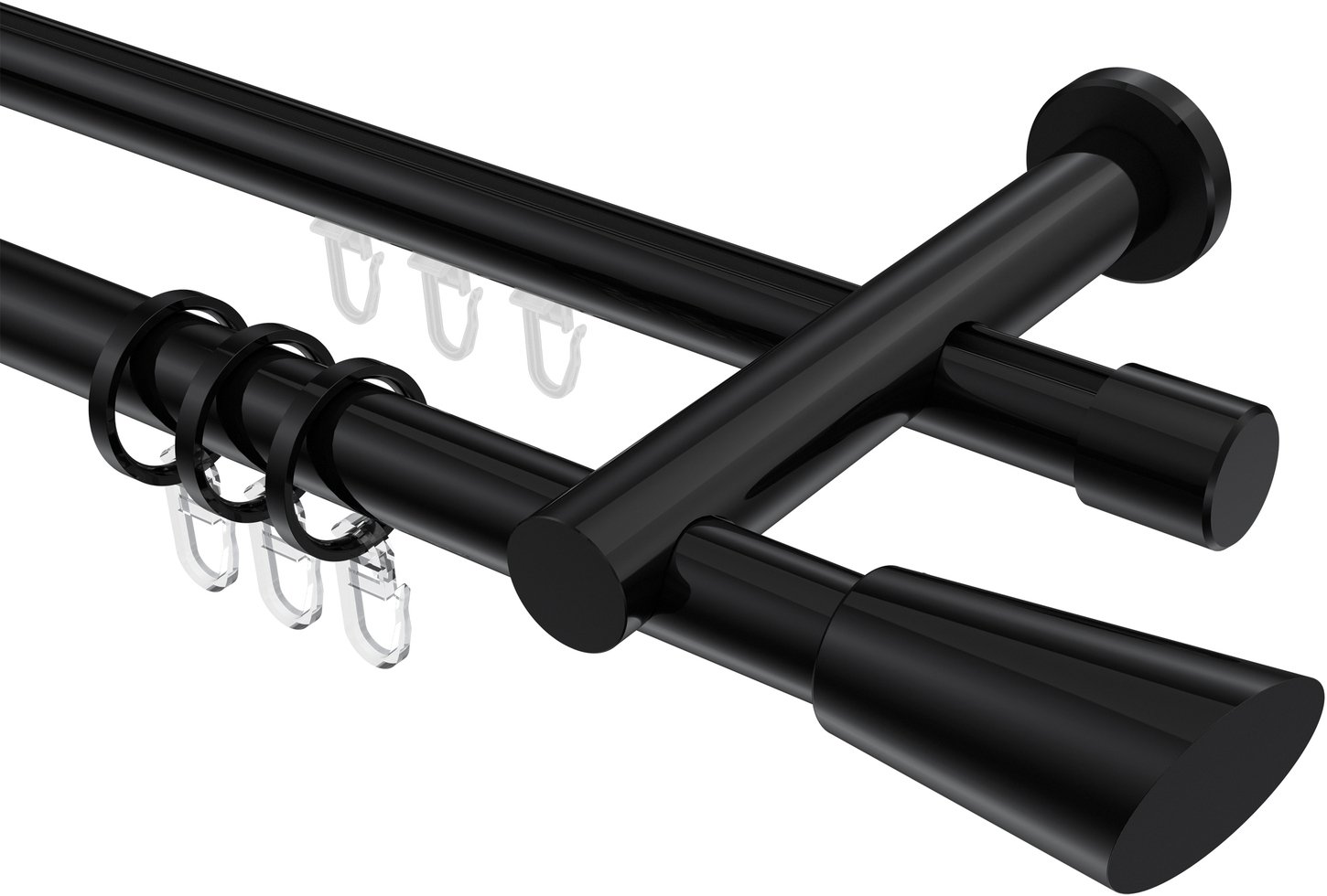 Rundrohr-Innenlauf Gardinenstangen aus Aluminium / Metall in 20 mm Ø, 2-läufig, Modell PLATON - Bento Schwarz