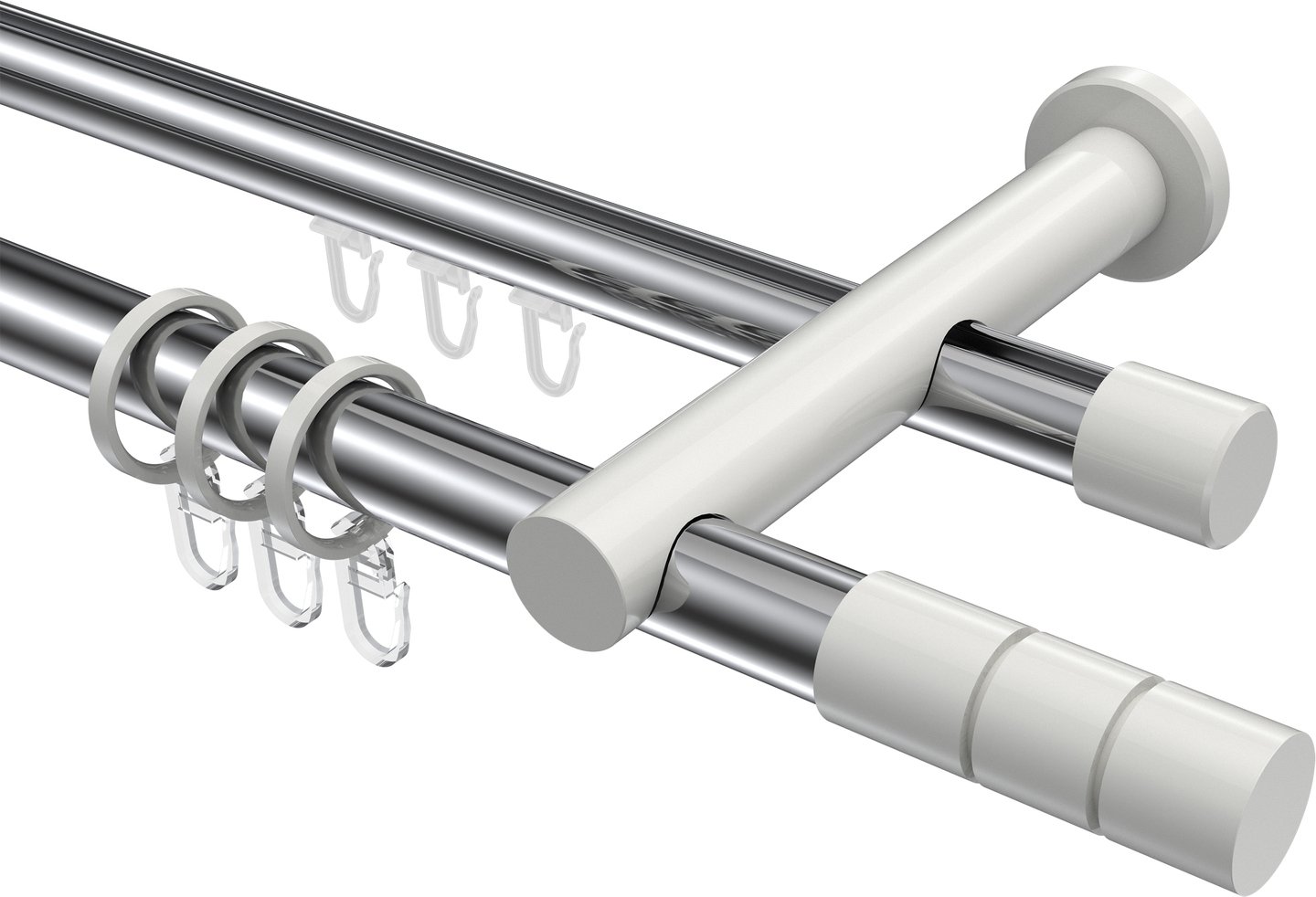 Rundrohr-Innenlauf Gardinenstangen aus Aluminium / Metall in 20 mm Ø, 2-läufig, Modell PLATON - Elanto Chrom / Weiß