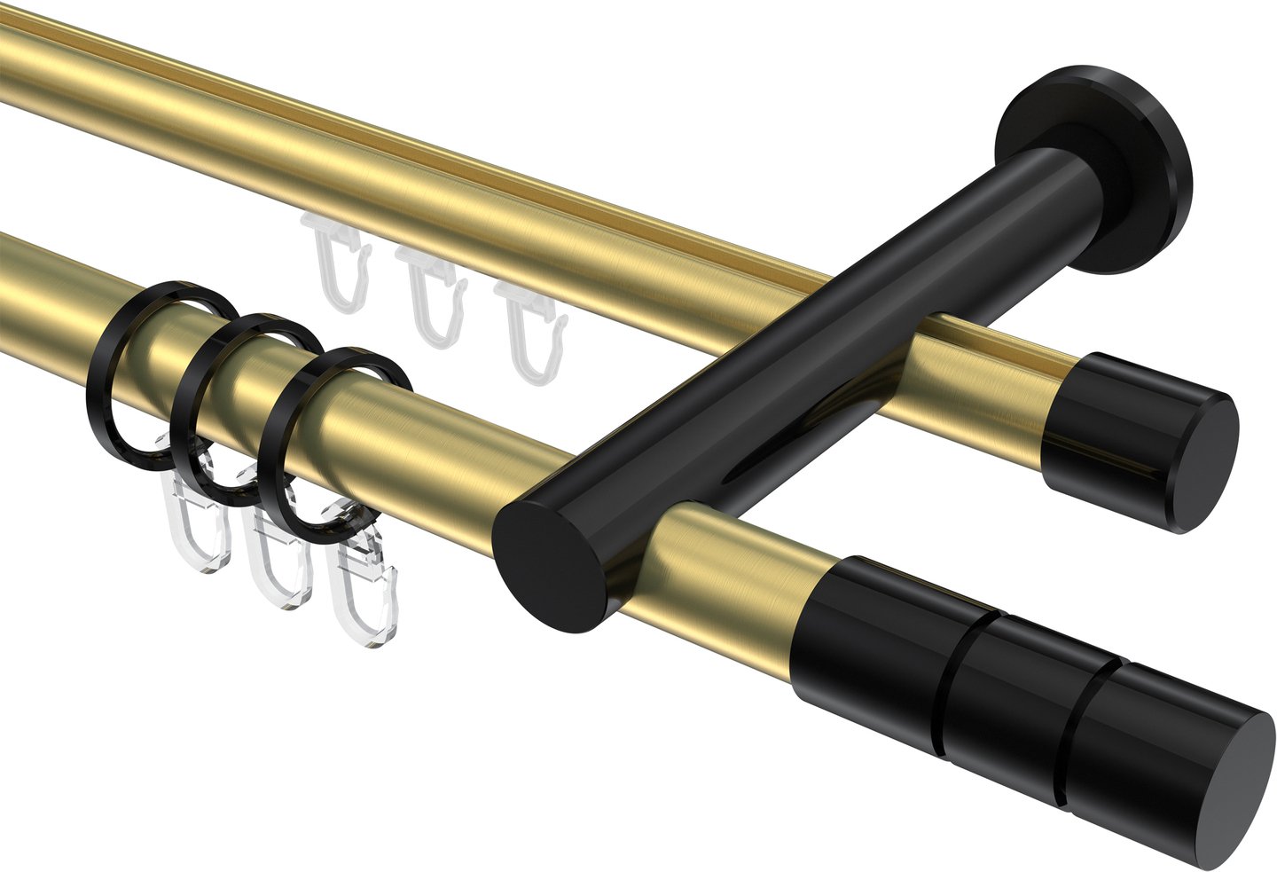 Rundrohr-Innenlauf Gardinenstangen aus Aluminium / Metall in 20 mm Ø, 2-läufig, Modell PLATON - Elanto Messing-Optik / Schwarz