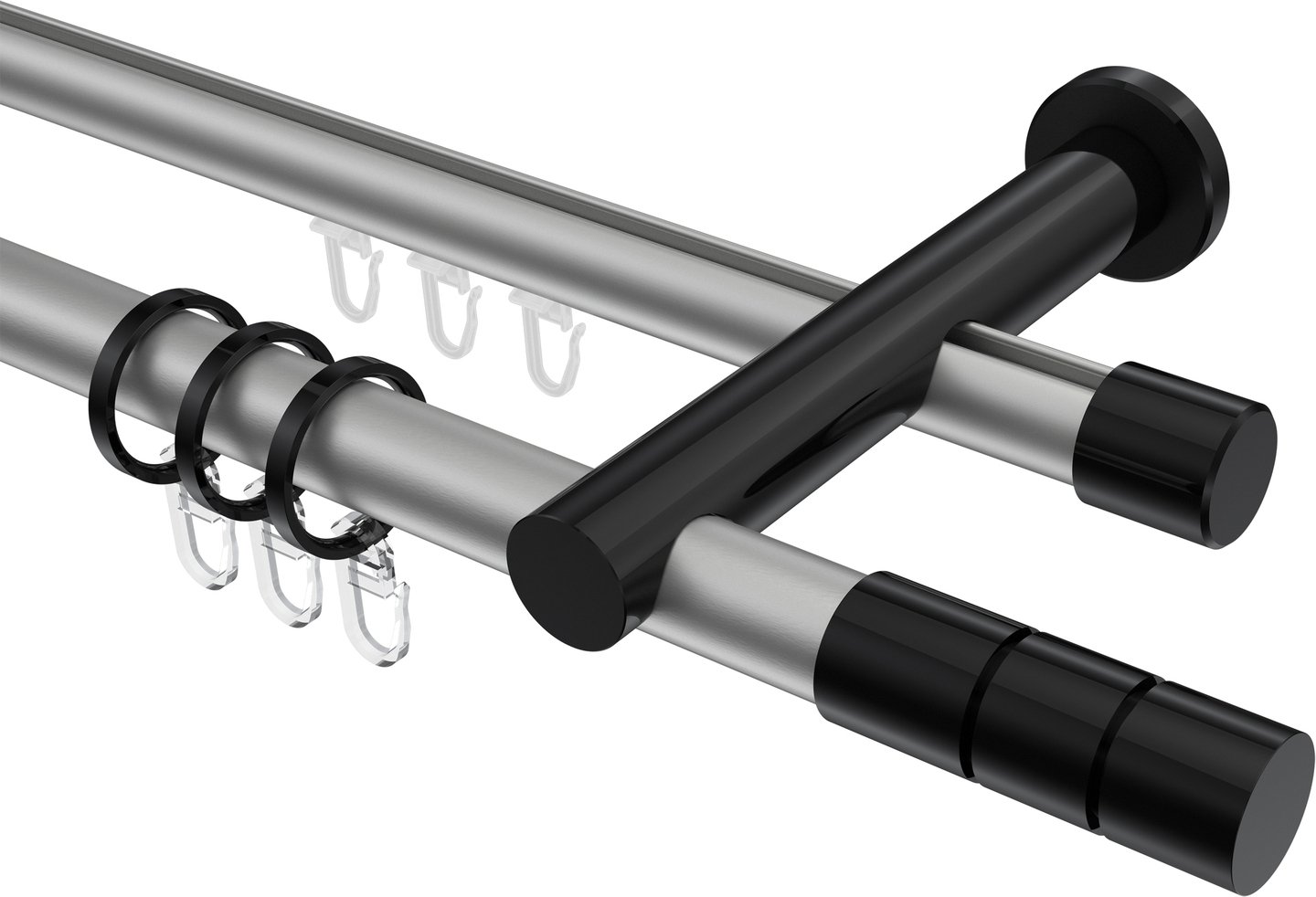 Rundrohr-Innenlauf Gardinenstangen aus Aluminium / Metall in 20 mm Ø, 2-läufig, Modell PLATON - Elanto Silbergrau / Schwarz
