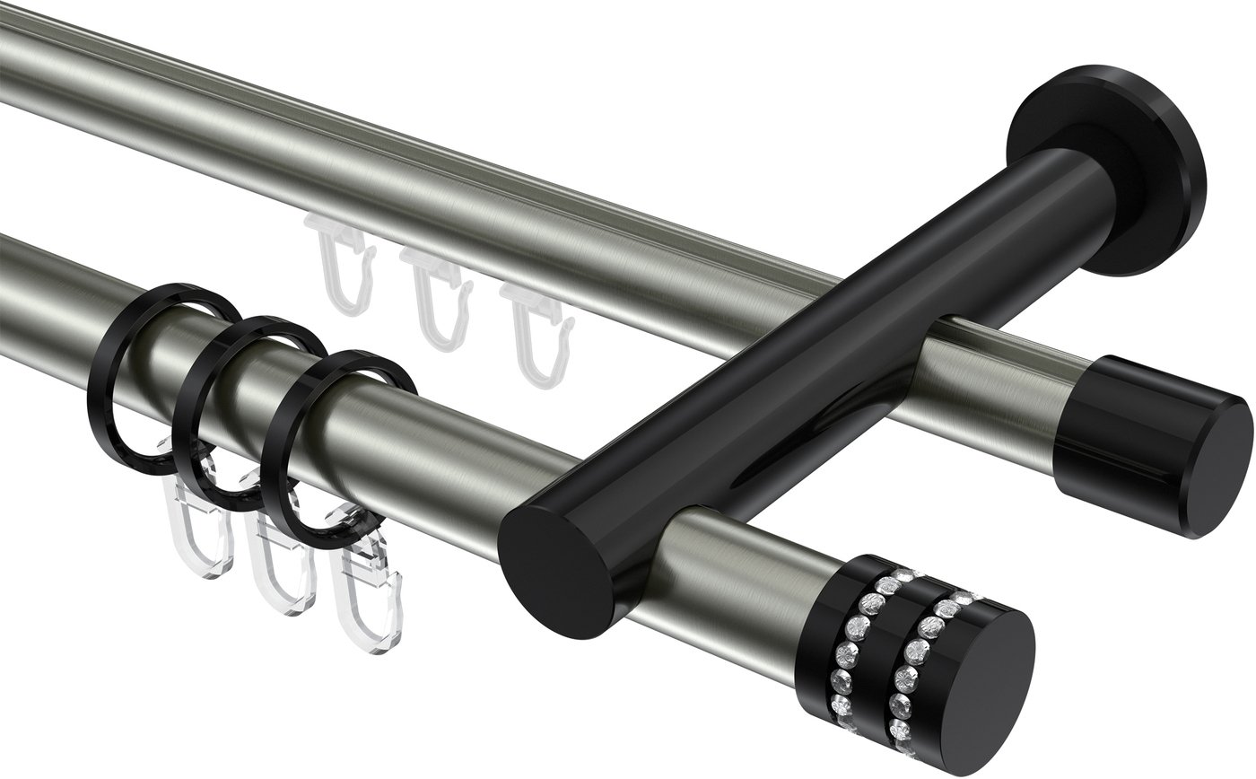 Rundrohr-Innenlauf Gardinenstangen aus Aluminium / Metall in 20 mm Ø, 2-läufig, Modell PLATON - Estana Edelstahl-Optik / Schwarz