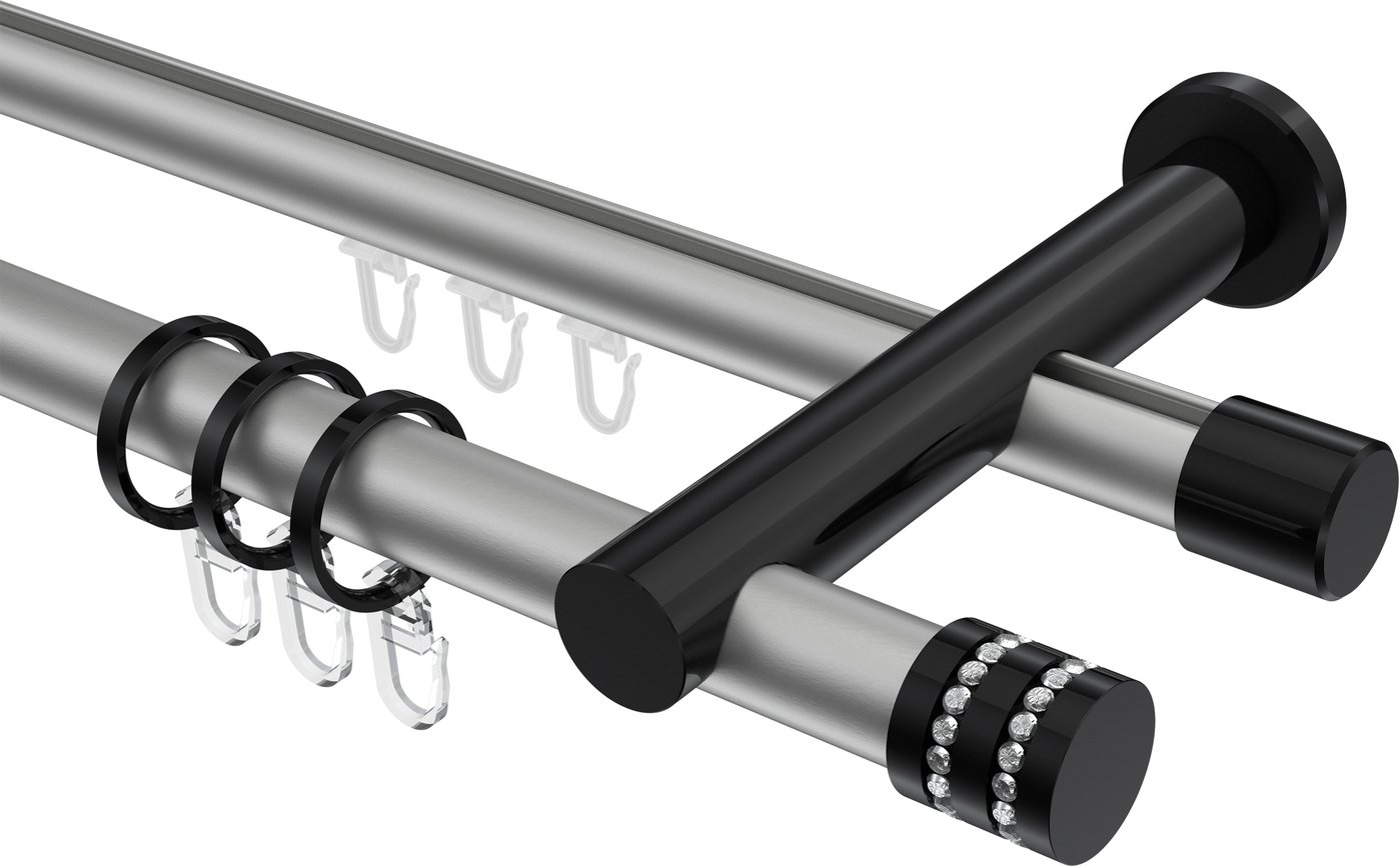Rundrohr-Innenlauf Gardinenstangen aus Aluminium / Metall in 20 mm Ø, 2-läufig, Modell PLATON - Estana Silbergrau / Schwarz