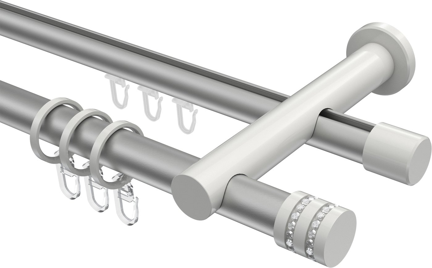 Rundrohr-Innenlauf Gardinenstangen aus Aluminium / Metall in 20 mm Ø, 2-läufig, Modell PLATON - Estana Silbergrau / Weiß