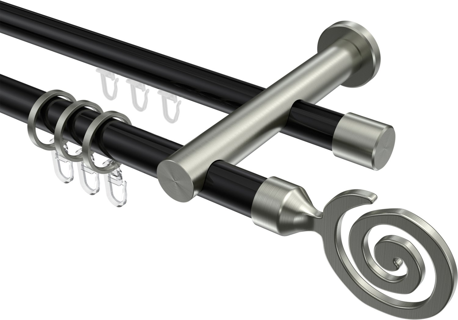 Rundrohr-Innenlauf Gardinenstangen aus Aluminium / Metall in 20 mm Ø, 2-läufig, Modell PLATON - Galaxa Schwarz / Edelstahl-Optik