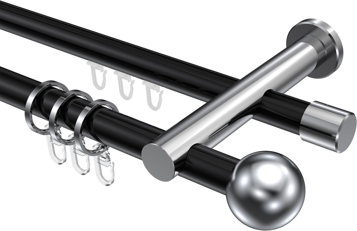 Rundrohr-Innenlauf Gardinenstangen aus Aluminium / Metall in 20 mm Ø, 2-läufig, Modell PLATON - Luino Schwarz / Chrom