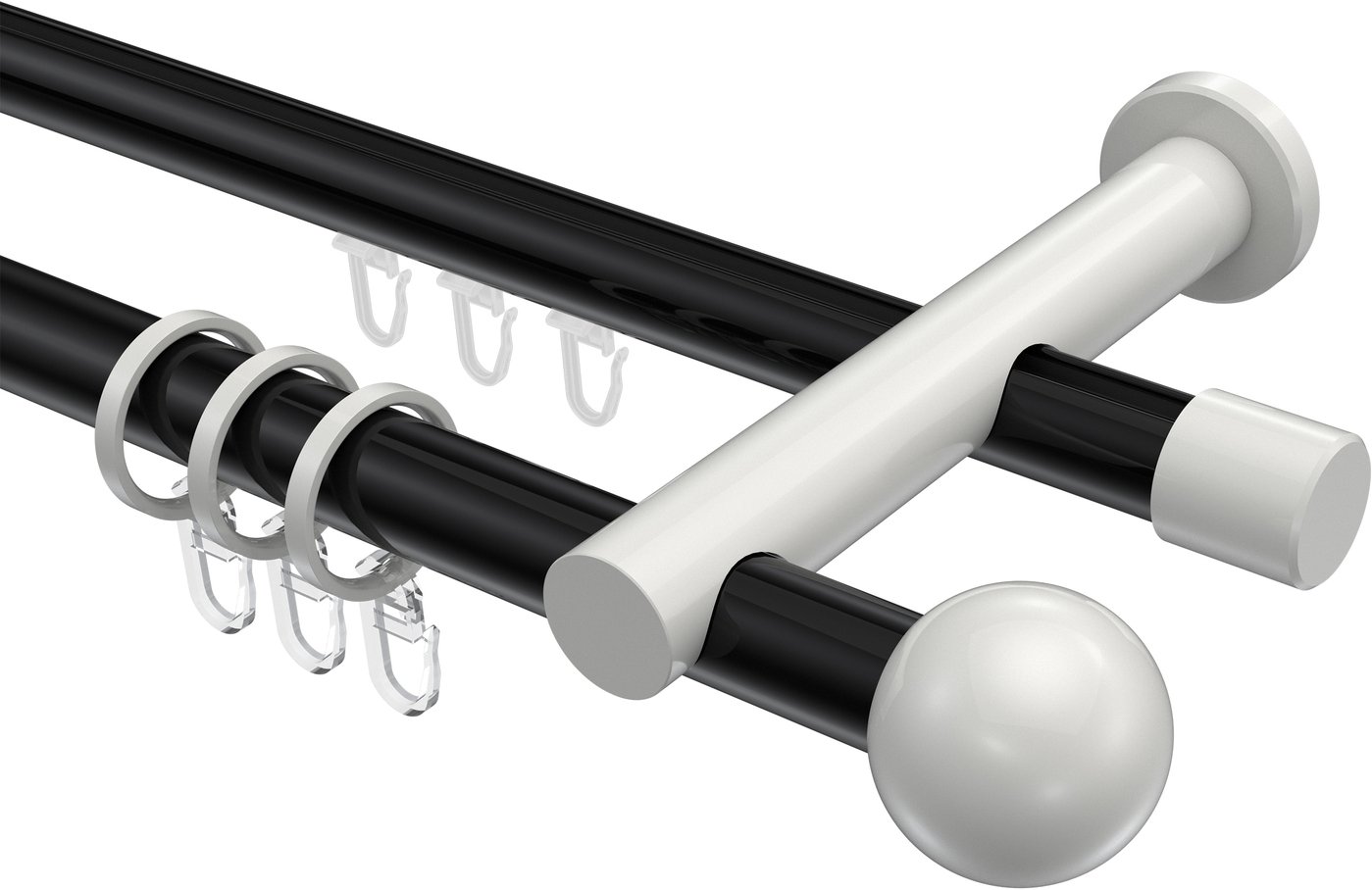 Rundrohr-Innenlauf Gardinenstangen aus Aluminium / Metall in 20 mm Ø, 2-läufig, Modell PLATON - Luino Schwarz / Weiß