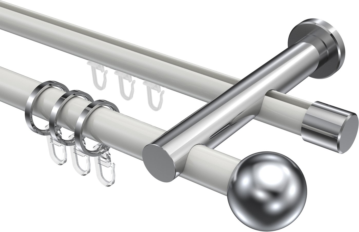 Rundrohr-Innenlauf Gardinenstangen aus Aluminium / Metall in 20 mm Ø, 2-läufig, Modell PLATON - Luino Weiß / Chrom