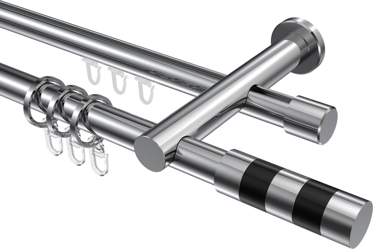 Rundrohr-Innenlauf Gardinenstangen aus Aluminium / Metall in 20 mm Ø, 2-läufig, Modell PLATON - Mavell Chrom