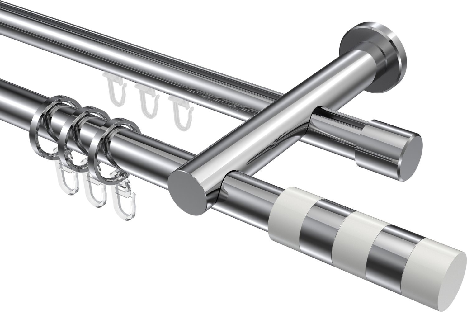 Rundrohr-Innenlauf Gardinenstangen aus Aluminium / Metall in 20 mm Ø, 2-läufig, Modell PLATON - Mavell Chrom