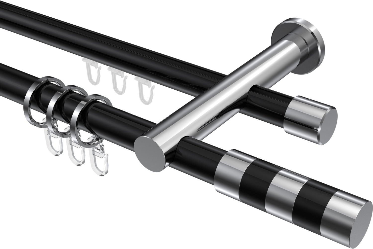 Rundrohr-Innenlauf Gardinenstangen aus Aluminium / Metall in 20 mm Ø, 2-läufig, Modell PLATON - Mavell Schwarz / Chrom