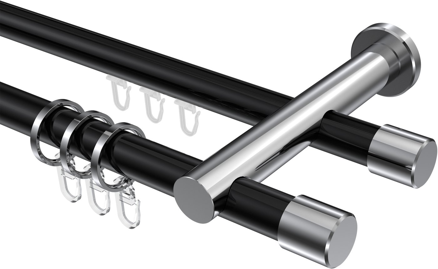 Rundrohr-Innenlauf Gardinenstangen aus Aluminium / Metall in 20 mm Ø, 2-läufig, Modell PLATON - Santo Schwarz / Chrom