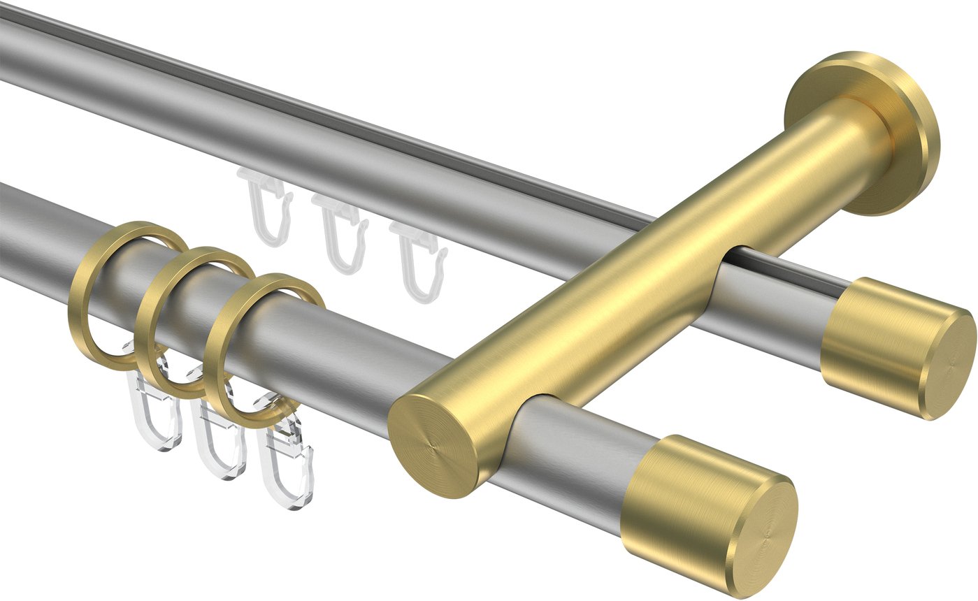 Informationen zu Rundrohr-Innenlauf Gardinenstange Aluminium / Metall 20 mm Ø 2-läufig PLATON - Santo Silbergrau / Messing-Optik: