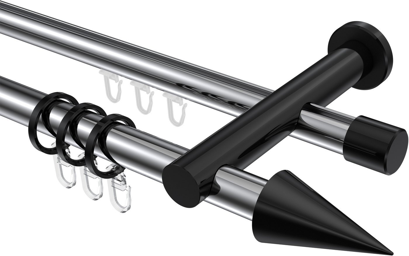 Rundrohr-Innenlauf Gardinenstangen aus Aluminium / Metall in 20 mm Ø, 2-läufig, Modell PLATON - Savio Chrom / Schwarz