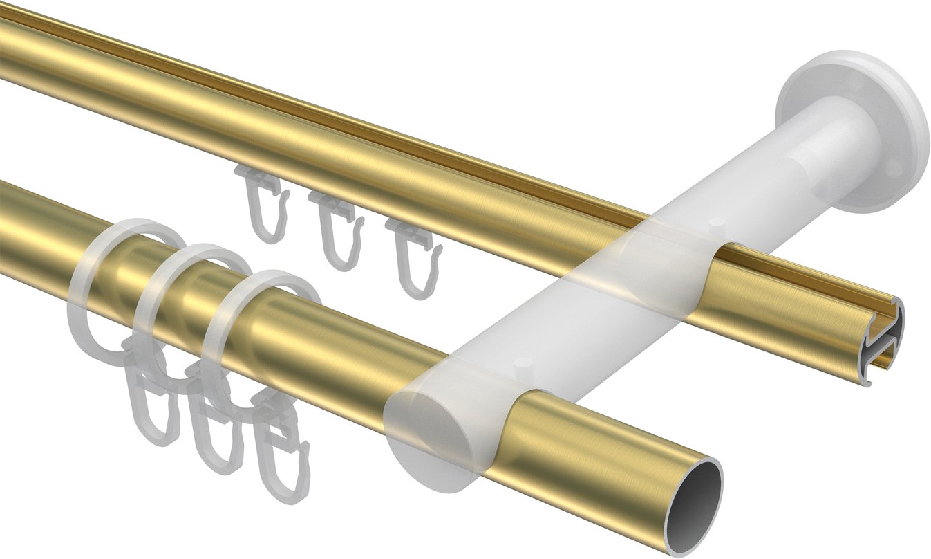 Informationen zu Rundrohr-Innenlauf Gardinenstange Aluminium / Metall 20 mm Ø 2-läufig PLATON - Savio Messing-Optik / Chrom: