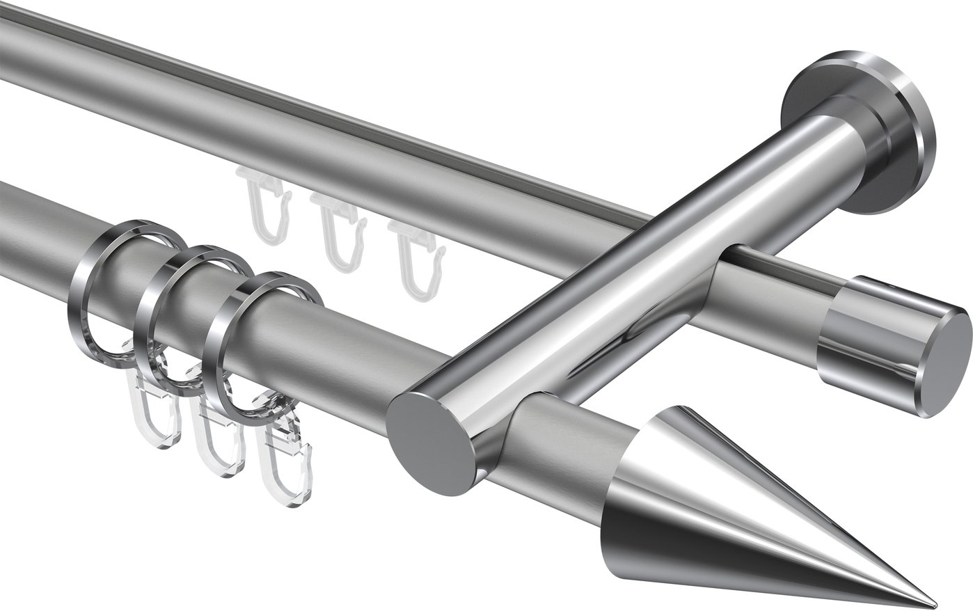 Rundrohr-Innenlauf Gardinenstangen aus Aluminium / Metall in 20 mm Ø, 2-läufig, Modell PLATON - Savio Silbergrau / Chrom