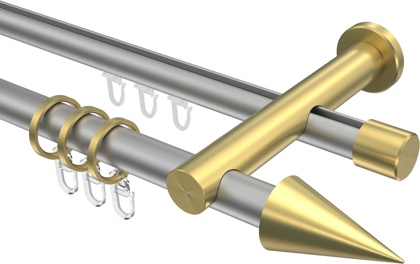 Informationen zu Rundrohr-Innenlauf Gardinenstange Aluminium / Metall 20 mm Ø 2-läufig PLATON - Savio Silbergrau / Messing-Optik: