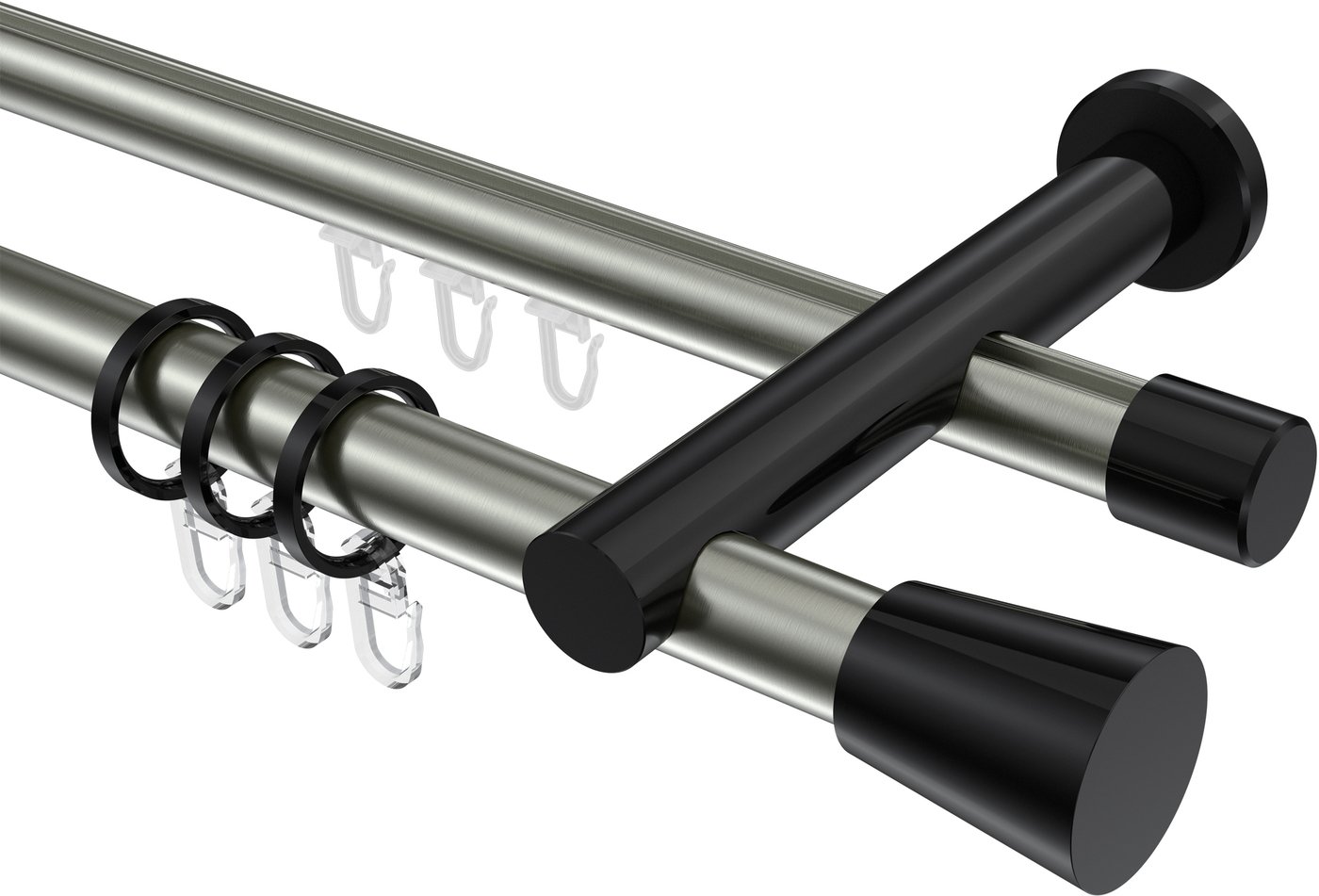 Rundrohr-Innenlauf Gardinenstangen aus Aluminium / Metall in 20 mm Ø, 2-läufig, Modell PLATON - Sitra Edelstahl-Optik / Schwarz