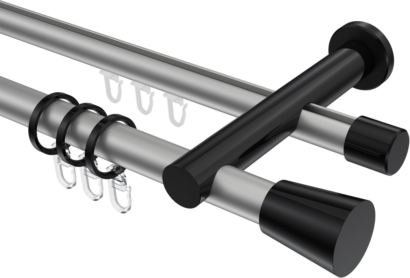 Rundrohr-Innenlauf Gardinenstangen aus Aluminium / Metall in 20 mm Ø, 2-läufig, Modell PLATON - Sitra Silbergrau / Schwarz