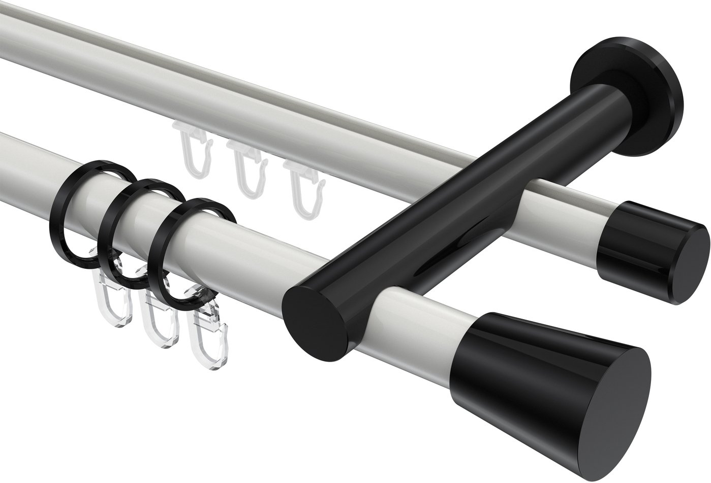 Rundrohr-Innenlauf Gardinenstangen aus Aluminium / Metall in 20 mm Ø, 2-läufig, Modell PLATON - Sitra Weiß / Schwarz