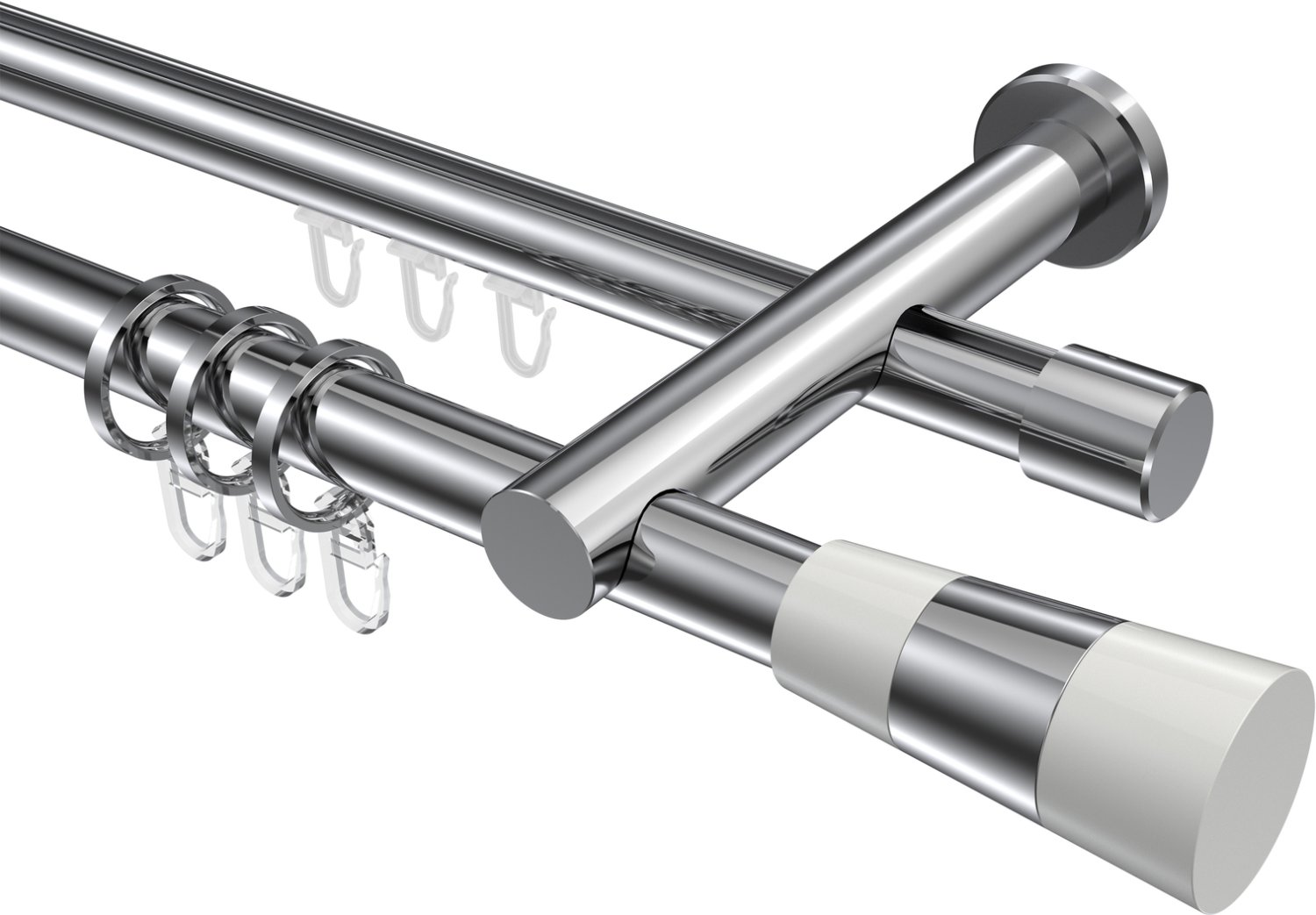 Rundrohr-Innenlauf Gardinenstangen aus Aluminium / Metall in 20 mm Ø, 2-läufig, Modell PLATON - Tanara Chrom