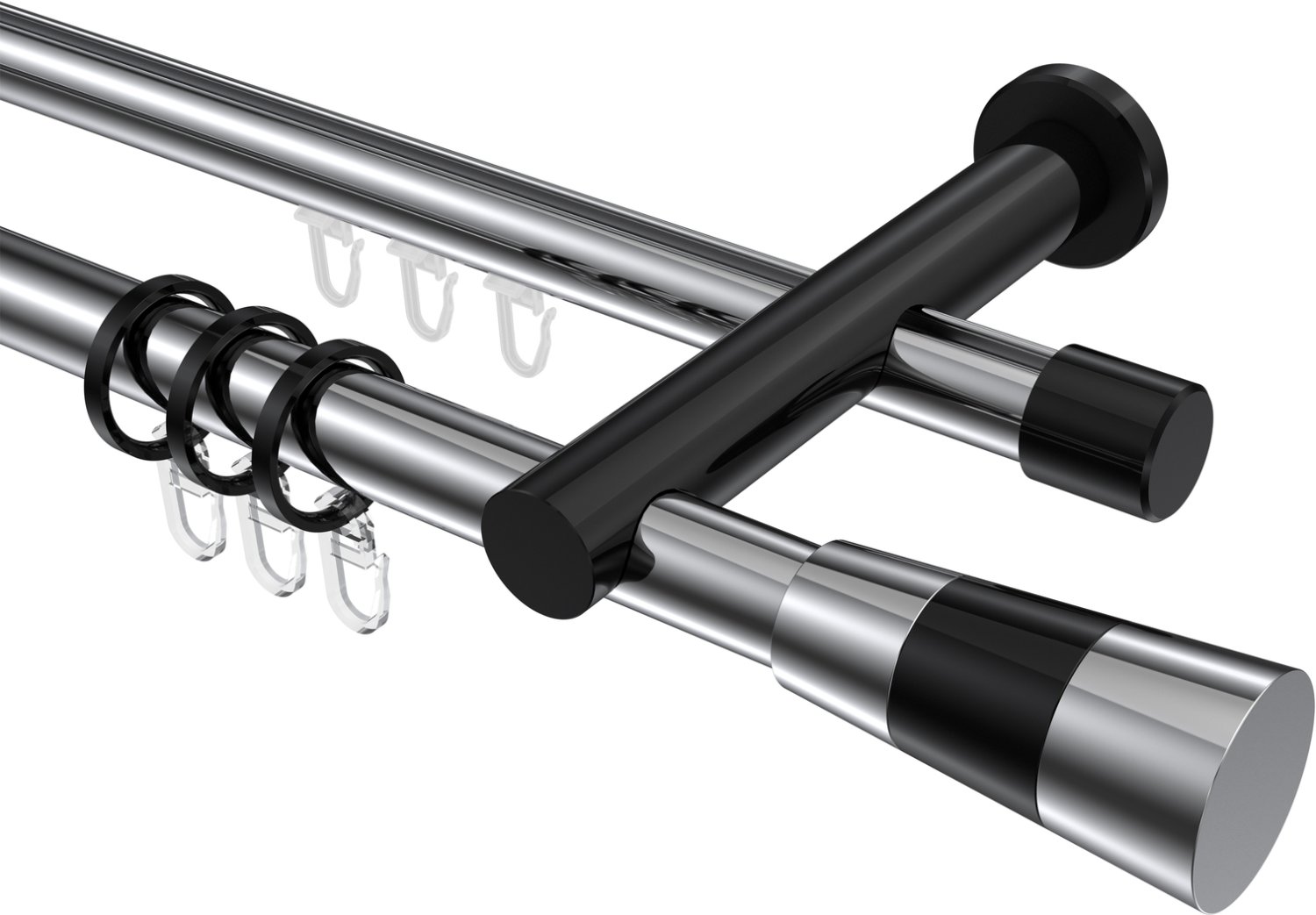 Rundrohr-Innenlauf Gardinenstangen aus Aluminium / Metall in 20 mm Ø, 2-läufig, Modell PLATON - Tanara Chrom / Schwarz