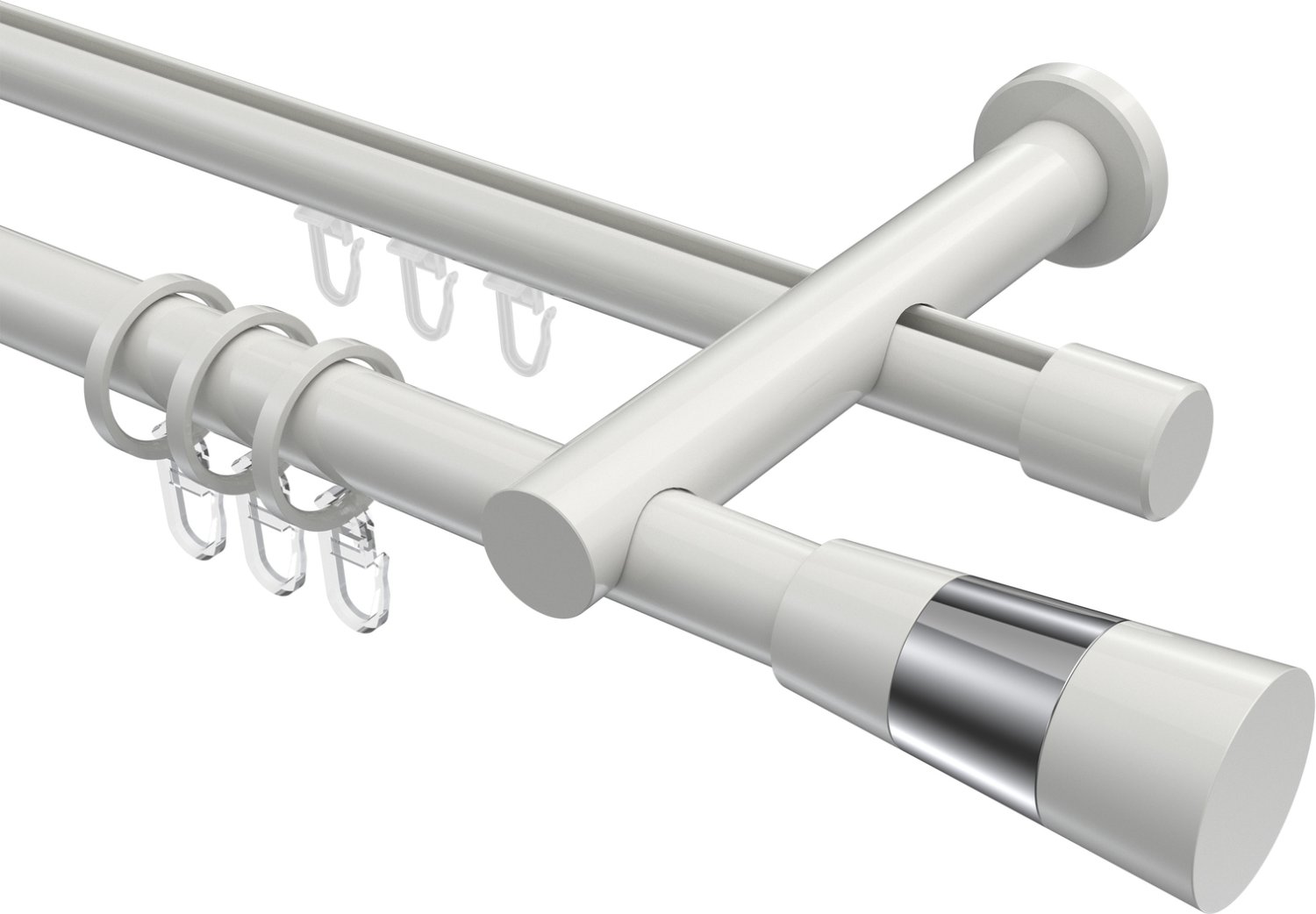 Rundrohr-Innenlauf Gardinenstangen aus Aluminium / Metall in 20 mm Ø, 2-läufig, Modell PLATON - Tanara Weiß