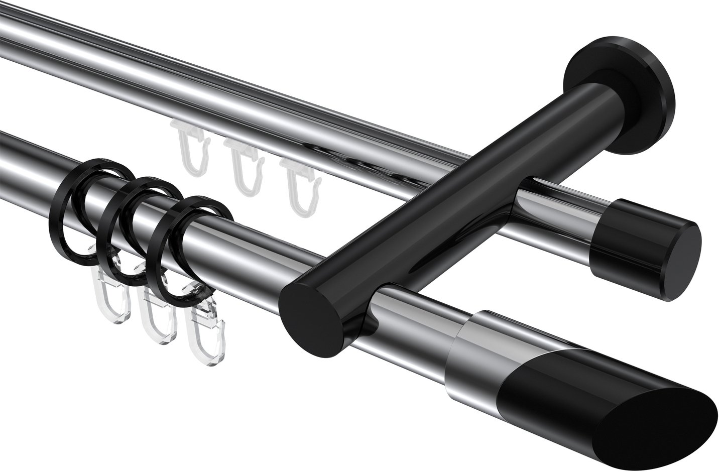 Rundrohr-Innenlauf Gardinenstangen aus Aluminium / Metall in 20 mm Ø, 2-läufig, Modell PLATON - Verano Chrom / Schwarz