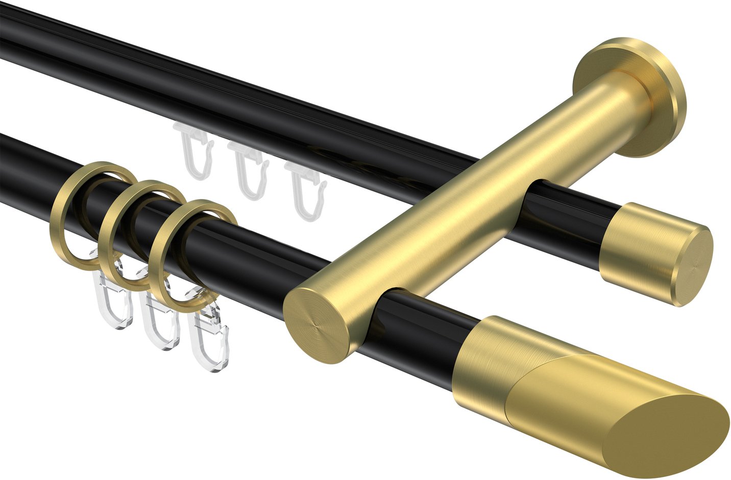 Rundrohr-Innenlauf Gardinenstangen aus Aluminium / Metall in 20 mm Ø, 2-läufig, Modell PLATON - Verano Schwarz / Messing-Optik