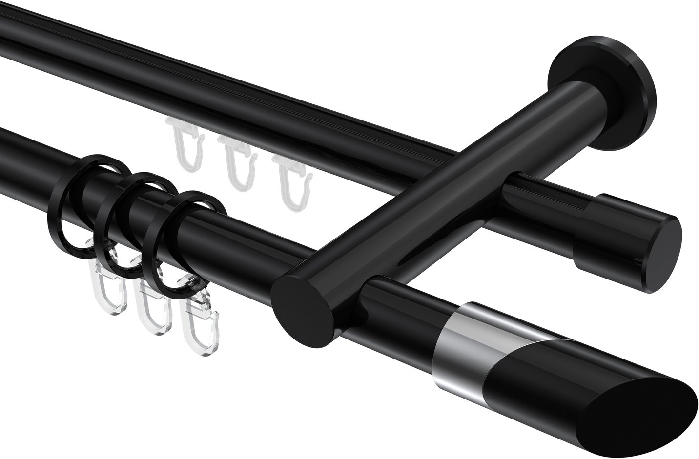 Rundrohr-Innenlauf Gardinenstangen aus Aluminium / Metall in 20 mm Ø, 2-läufig, Modell PLATON - Verano Schwarz