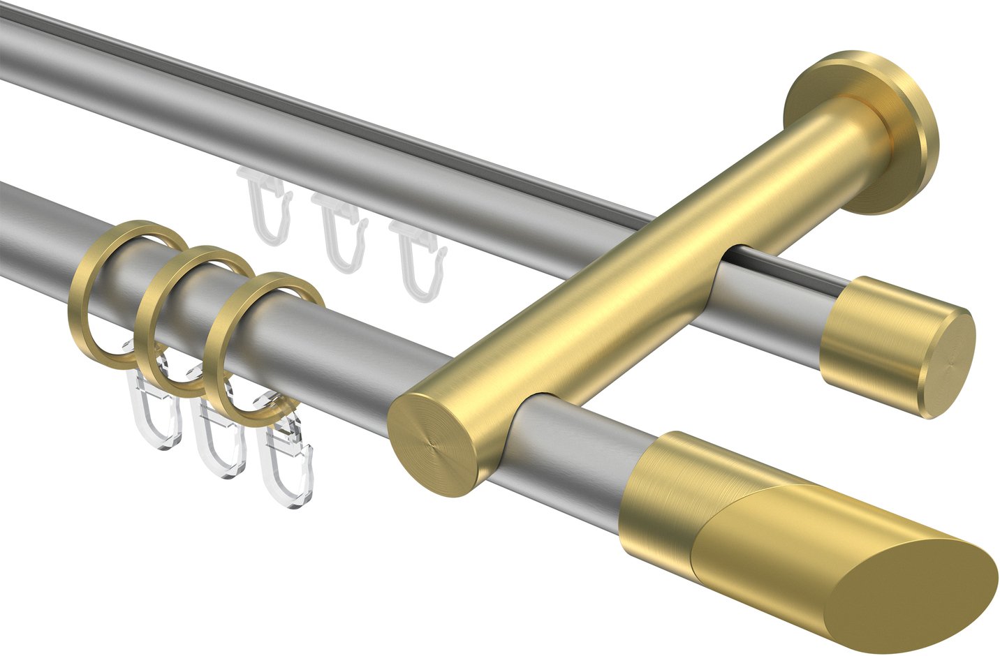 Rundrohr-Innenlauf Gardinenstangen aus Aluminium / Metall in 20 mm Ø, 2-läufig, Modell PLATON - Verano Silbergrau / Messing-Optik