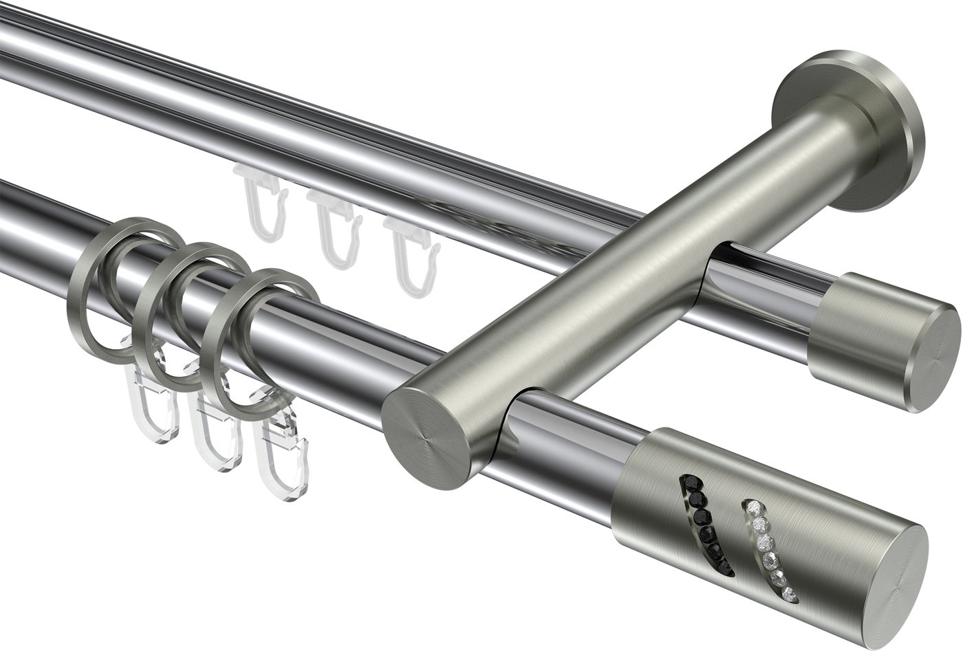 Rundrohr-Innenlauf Gardinenstangen aus Aluminium / Metall in 20 mm Ø, 2-läufig, Modell PLATON - Zoena Chrom / Edelstahl-Optik